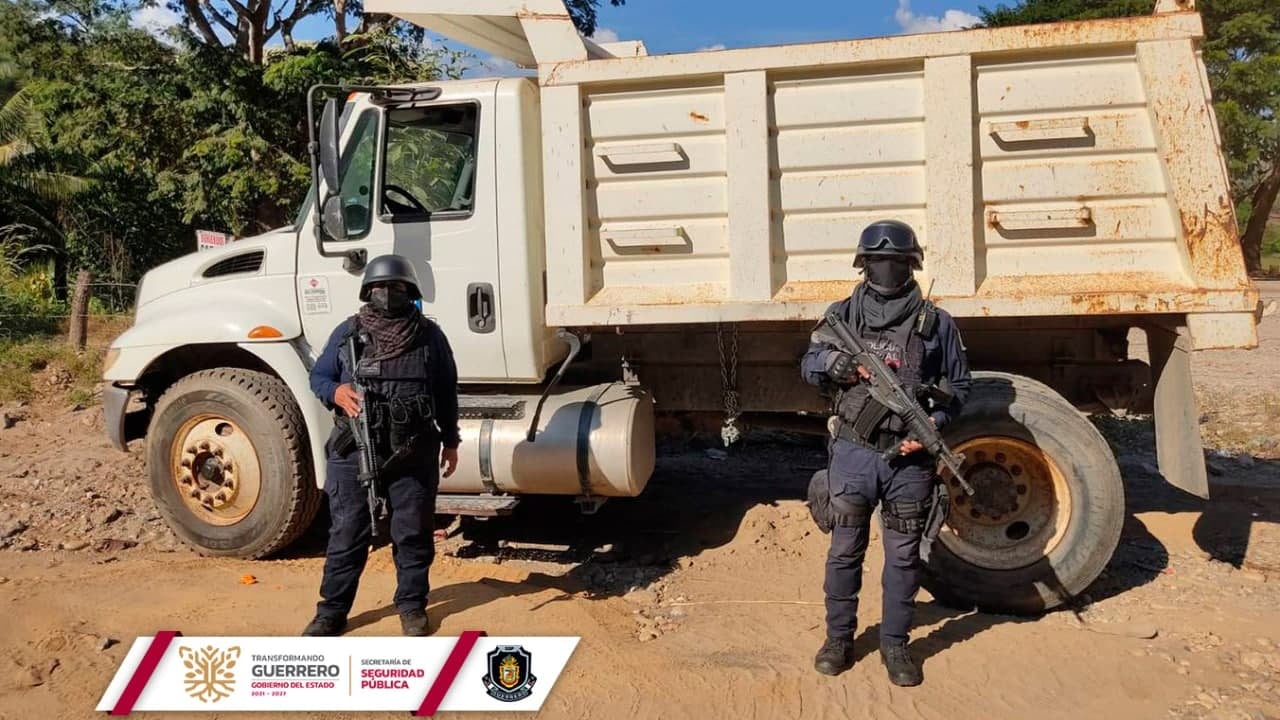 El vehículo recuperado es un camión de volteo marca Internacional, modelo 4300, con placas de circulación del estado de Guerrero.