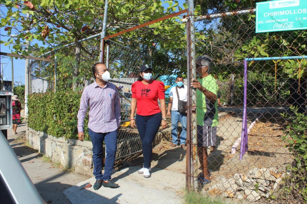 Este martes, acompañado por la regidora Liliana Quijano Buitrón, el funcionario municipal visitó la cancha techada del poblado San Isidro y el parque infantil de la calle Chirimoyos en la colonia Jardín Palmas, espacios que serán contemplados dentro de los programas y acciones que Sedesol Acapulco arrancará con el presupuesto 2021.