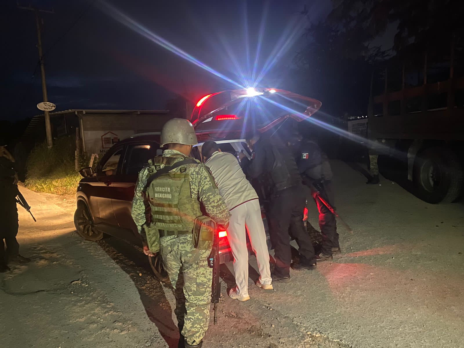 En este operativo interinstitucional participan elementos de la Policía Estatal, el Ejército Mexicano y la Guardia Nacional, quienes patrullan áreas estratégicas de la cabecera municipal y zonas aledañas.