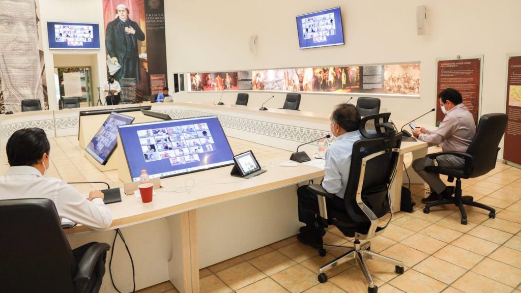 Chilpancingo., Gro, 26 de abril de 2021.- Al presidir la Mesa de Coordinación para la Construcción de la Paz, el gobernador Héctor Astudillo Flores con mandos militares, navales y autoridades civiles, evaluaron los indicadores delictivos en el Estado y dieron seguimiento a las incidencias registradas durante el fin de semana, así como el resultado de los operativos conjuntos desplegados para continuar reduciendo los índices que colocan a la entidad en décimo lugar a nivel Nacional respecto a homicidios dolosos.