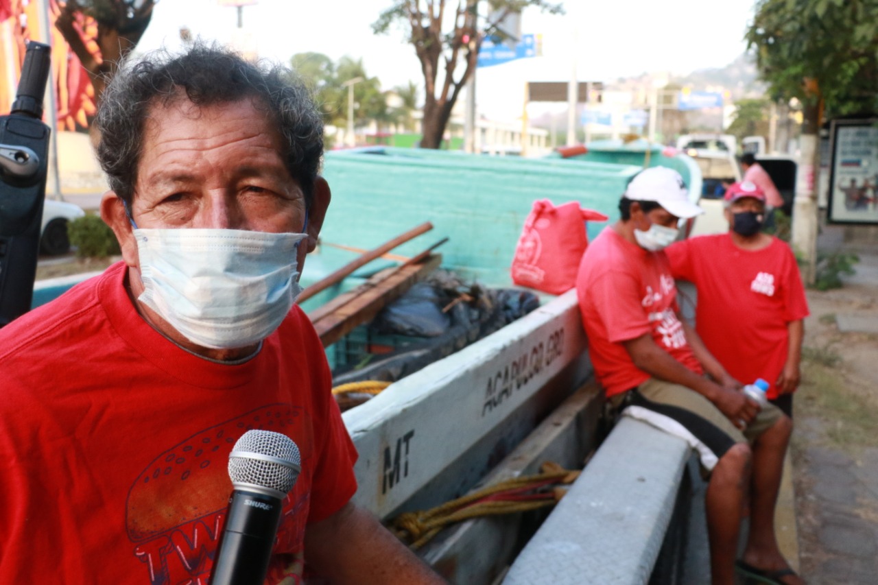 Los tres pescadores viajaron sin separarse de su embarcación “Genesaret” —la cual fue remolcada hasta Playa Las Hamacas, sede de los pescadores que conforman la cooperativa Piedra Pelícano—, con la esperanza de que la alcaldesa sea su madrina para lograr el financiamiento de un nuevo motor para su lancha tiburonera.