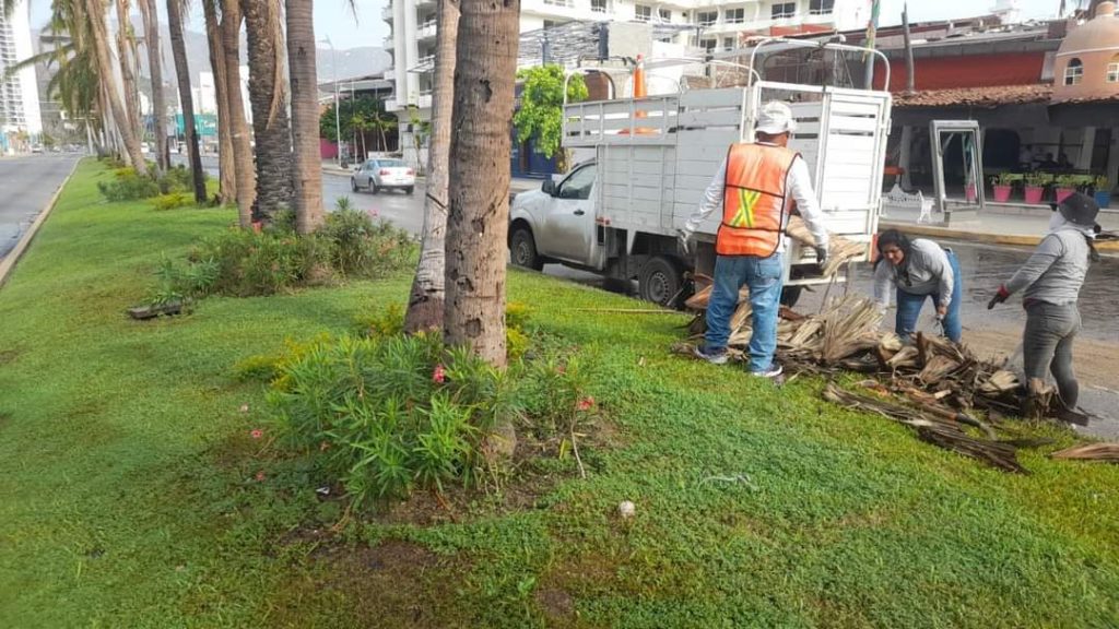 El director de Áreas Verdes, Omar Hernández Juárez, destacó que de manera diaria trabajan distintas cuadrillas para el mejoramiento de las 380 palmeras que se encuentran a lo largo de los 12 kilómetros de la avenida turística, desde Icacos hasta Caleta, donde se busca que evolucione el follaje para brindar una estética sanitaria.