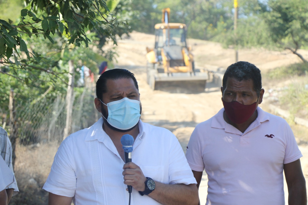 Acapulco, Gro., 09 de noviembre de 2020.- El secretario General del Ayuntamiento de Acapulco, Ernesto Manzano Rodríguez acudió al poblado de El Campanario para poner en marcha el programa de rehabilitación de 500 kilómetros de carretera y caminos saca cosecha en beneficio de los pobladores de los Bienes Comunales de Cacahuatepec.