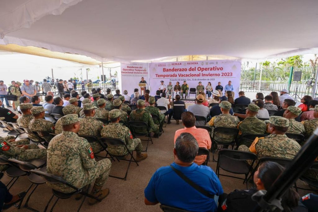 Acapulco, Gro., 12 de diciembre de 2023.- La gobernadora Evelyn Salgado Pineda dio el banderazo del Operativo Vacacional Invierno 2023, con el despliegue de más de 10 mil elementos de seguridad por dependencias e instituciones de los tres órdenes de gobierno en todo el estado de Guerrero, para garantizar la estancia de los visitantes con vigilancia en las principales carreteras, así como en las zonas de mayor afluencia turística del “Hogar del Sol”.