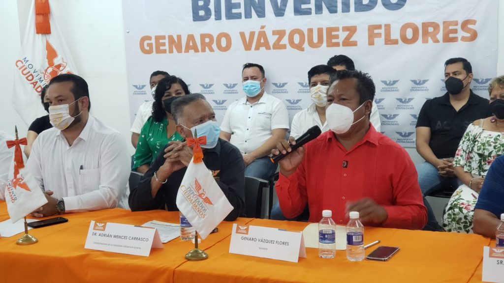 “A partir de hoy entrego mi renuncia al Cabildo, como integrante de la fracción del Partido Revolucionario Institucional y solicito se me incorpore a la fracción de Movimiento Ciudadano”, sostuvo el líder social en conferencia de prensa realizada en las instalaciones del partido, donde asistieron el delegado nacional en Guerrero, Napoleón Astudillo Martínez; el comisionado nacional Adán Pérez Utrera, los coordinadores de las comisiones operativas estatal y municipal, Adrián Wences Carrasco y Ramiro Solorio Almazán, respectivamente.