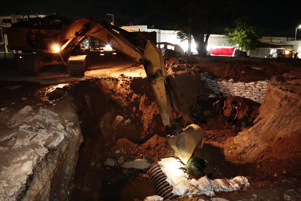 De manera emergente se abrió una ventana en el colector de 36 pulgadas de diámetro y posteriormente se hizo una interconexión para distribuir el agua al nuevo colector de 60 pulgadas, el cual conecta al cárcamo de Malaspina.