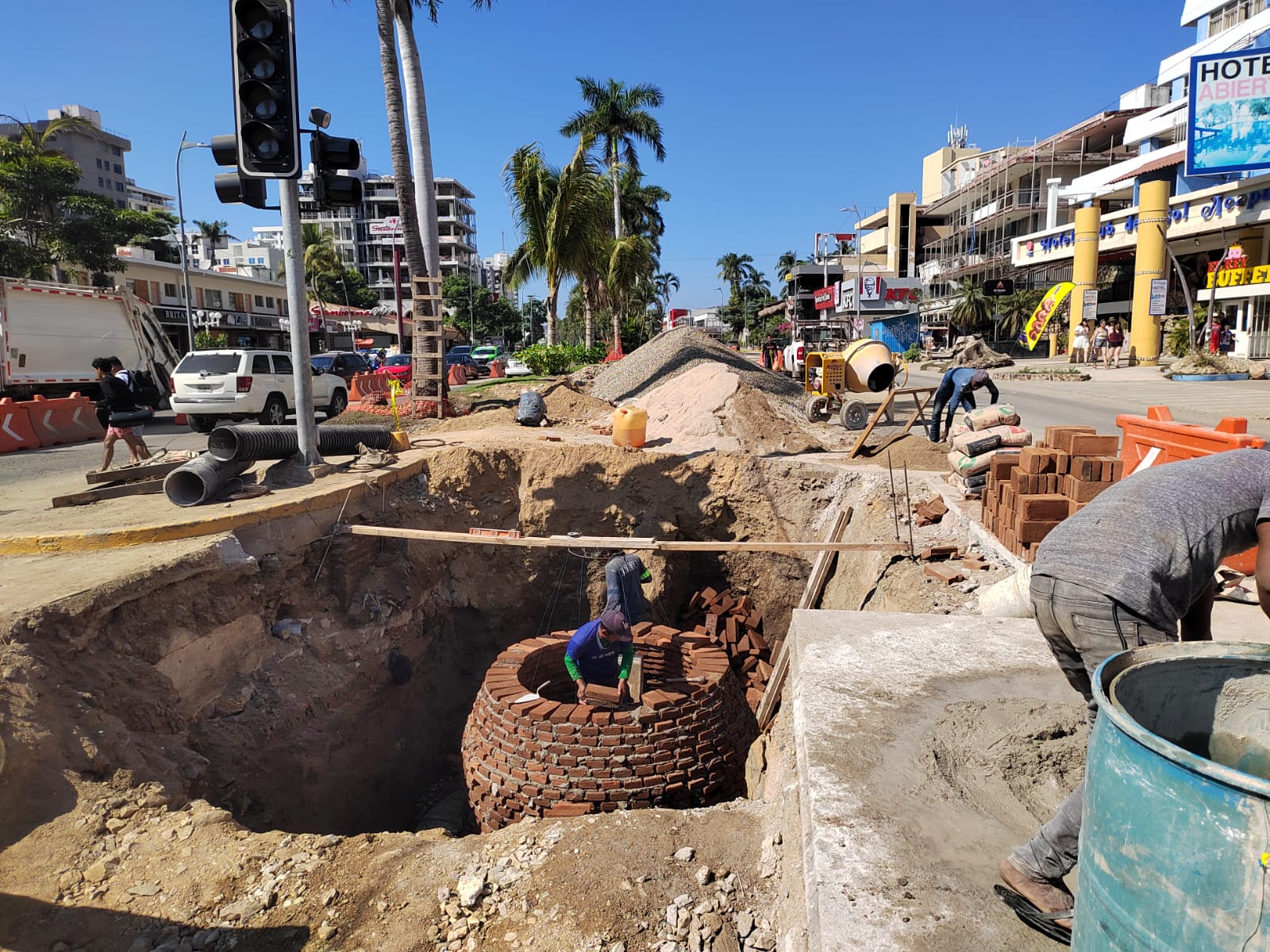 La Comisión de Agua Potable, Alcantarillado y Saneamiento del Estado de Guerrero (CAPASEG), informó que se está trabajando de manera intensiva, con horarios ampliados los siete días de la semana, con la finalidad de cumplir el compromiso de concluir los trabajos a más tardar el 15 de diciembre para abrir a la circulación la vialidad más importante del puerto y recibir al turismo con una imagen adecuada y mejores servicios en el Hogar del Sol.