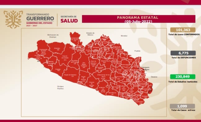 Al presentar las estadísticas sobre nuevos contagios, detalló que desde el inicio de la pandemia, Guerrero acumula 101,363 casos confirmados y 6,775 defunciones a causa del virus SARS-CoV-2, y que a nivel nacional la entidad se ubica en el lugar 28 en casos activos de COVID-19, sin reporte de fallecimientos por esta causa en las últimas 24 horas.