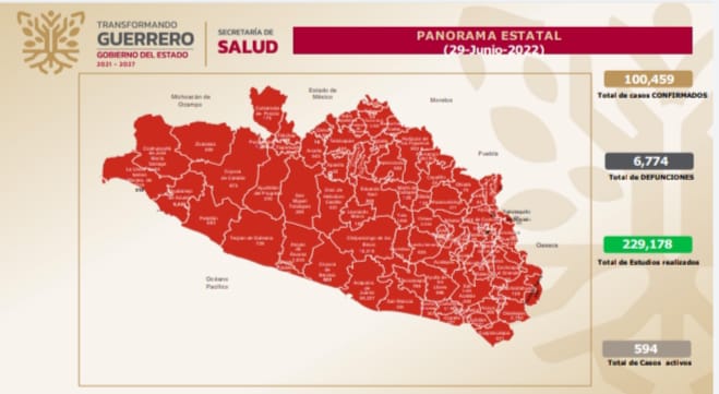 Además se detalló que desde el inicio de la pandemia, Guerrero acumula 100,459 casos confirmados y 6,774 defunciones a causa del Covid-19, de acuerdo con el informe que actualiza diariamente la SSG, subrayó que la pandemia no ha terminado y que en los últimos días se han incrementado los casos de COVID producidos principalmente por la variante Ómicron, aunque la mayoría de los cuadros que se presentan son leves que no ameritan hospitalización ni cuidados especiales.