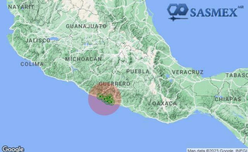 La información indica que el sensor más cercano donde fue detectado el sismo, fue el que se encuentra en la costa del estado de Guerrero a 5 km al oeste de Coyuca de Benítez.