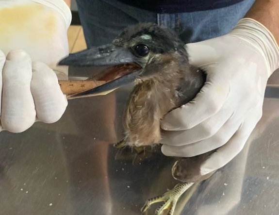 El médico veterinario del Parque Papagayo, Manuel Octavio López Victoria, recibió el ave esta semana, y después de revisar su estado de salud, determinó que se encuentra en buenas condiciones. Explicó que es un ave bebé y que podría tratarse de una garza cucharón o cormorán, y hasta que crezcan más sus alas se podrá determinar con exactitud su especie.