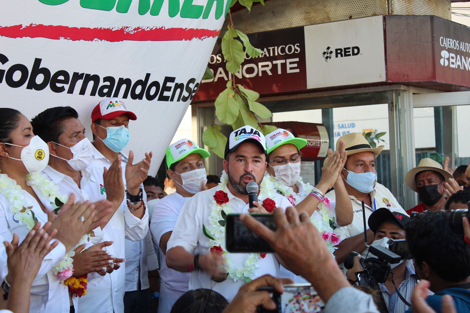 Taja Ramírez, acompañado por el candidato a la gobernatura de Guerrero, Mario Moreno Arcos, se comprometió en rescatar la Comisión de Agua Potable y Alcantarillado del Municipio de Acapulco donde solo habrá especialistas y no meterá a nadie a laborar, sus trabajadores tendrán prestaciones y la paramunicipal ya no será más la caja grande de los presidentes municipales.