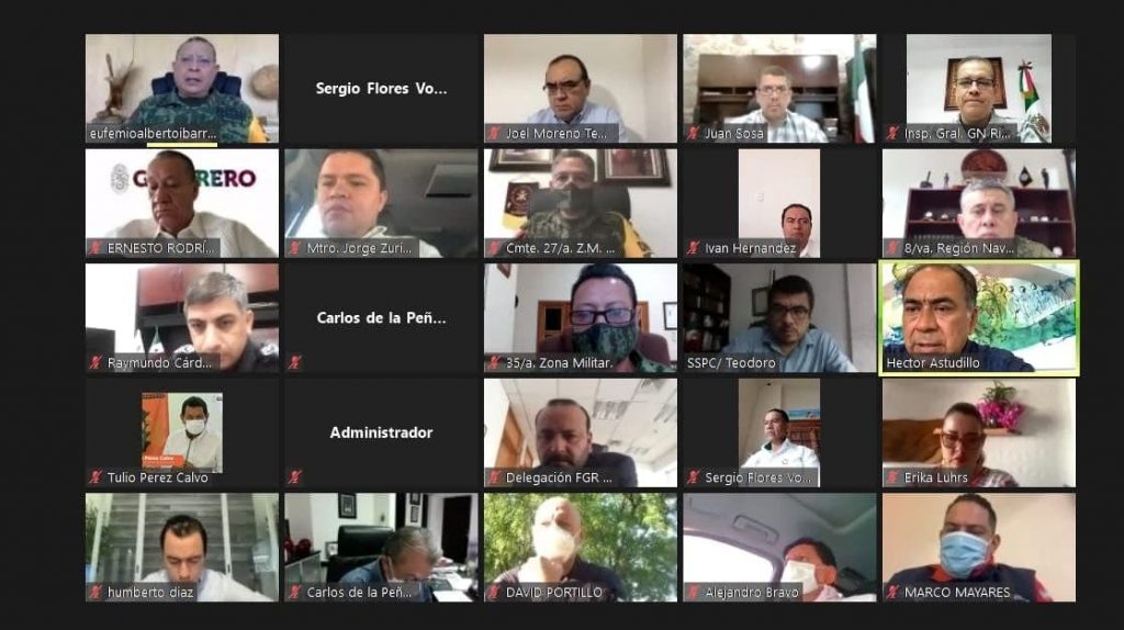 De manera virtual el Gobernador Héctor Astudillo Flores con autoridades civiles y militares, revisaron las incidencias delictivas registradas durante las últimas 24 horas y se acordó reforzar los operativos desplegados en las siete regiones de la entidad para continuar reduciendo los indicadores delictivos en Guerrero y se revisó el operativo para el traslado y resguardo de la paquetería electoral.