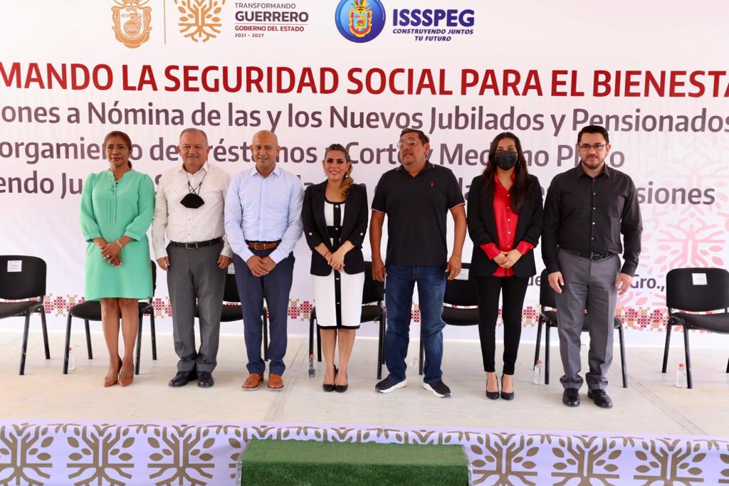 Chilpancingo, Gro., a 31 de mayo de 2022.- Como parte de la transformación de la seguridad social para el Bienestar en Guerrero, la gobernadora Evelyn Salgado Pineda, acompañada por el Senador Félix Salgado Macedonio, encabezó la entrega de incorporaciones a 120 nuevos jubilados y pensionados al ISSSPEG, así como 165 préstamos de corto y mediano plazo a burocracia y magisterio con una inversión de 3.3 millones de pesos y la nivelación de 118 pensiones, restableciendo así los derechos de las y los trabajadores al servicio del Estado de Guerrero.