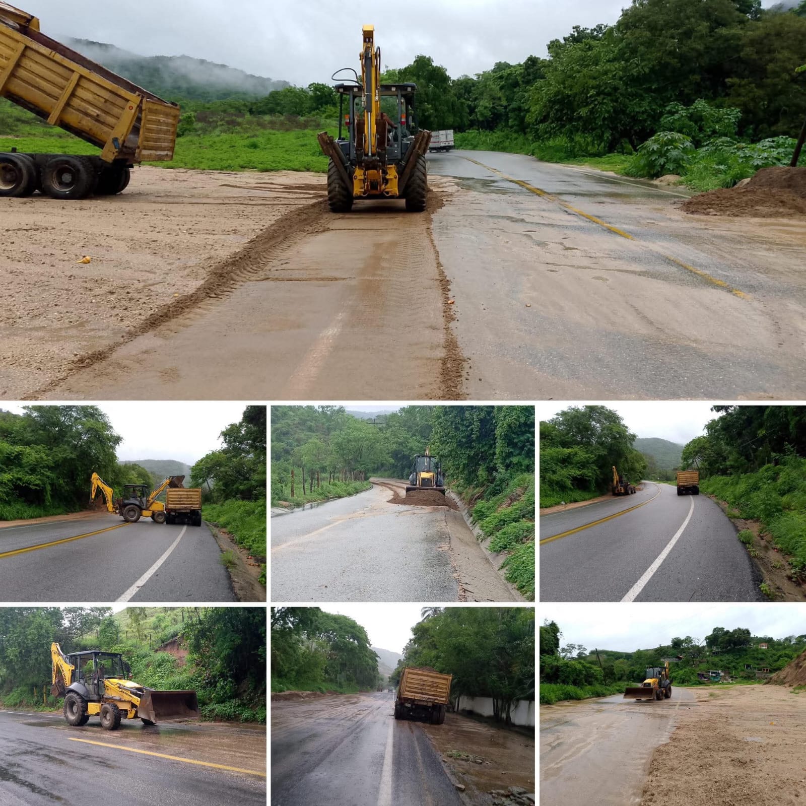 Como parte de la estrategia “Fuerza Acapulco”, con retroexcavadoras y volteos, el personal retiró tierra en la carretera federal México – Acapulco, a la altura de los Kilómetros 40, 42 y 45.