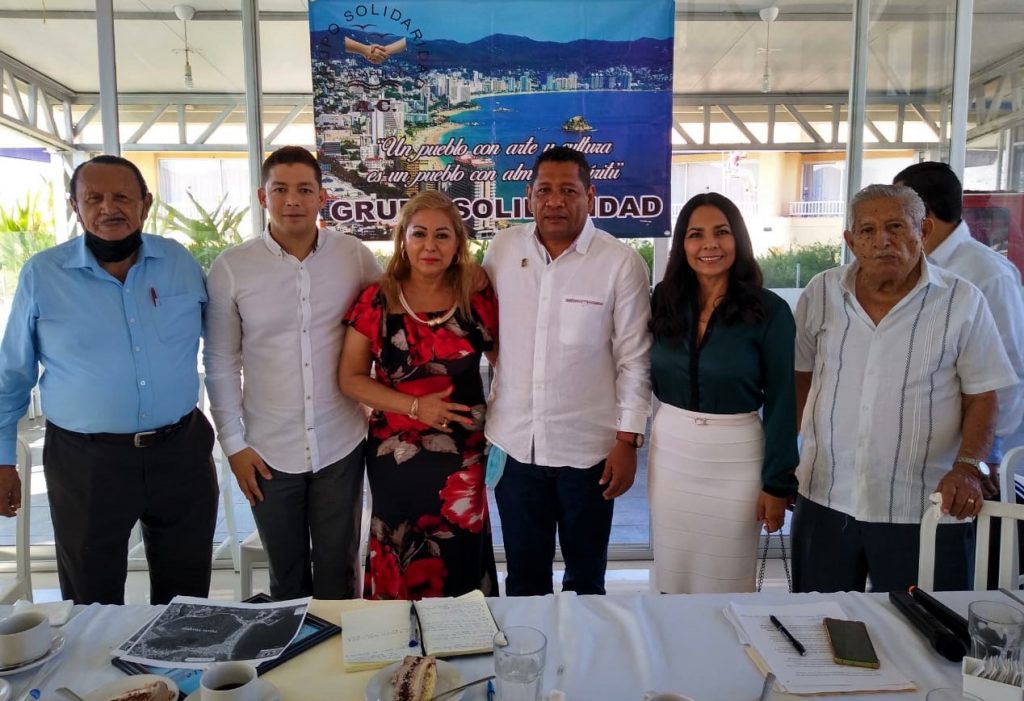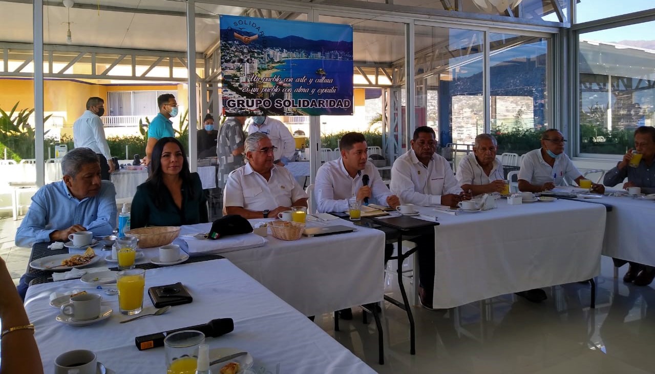 ACAPULCO Guerrero a 3 de febrero del 2022.- El Grupo Solidaridad, celebró si reunión de trabajo, la mañana de este jueves, donde tuvo como invitados de honor: Capitán Maximiliano Serrano Pérez, Secretario de Seguridad Publica de Acapulco y el coordinador General de Movilidad y Transporte del Municipio de Acapulco, José Ramírez Arreguín.