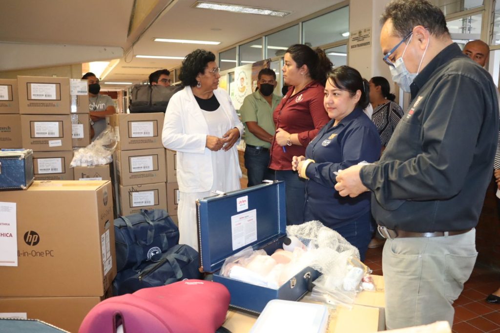 Ante esto, Ibarez Castro, entregó equipos de cómputo, ultrasonido, kits neonatales, rotafolios, equipo de reanimación, medicamento para emergencias obstétricas y papelería para actividades del componente de salud materna y perinatal en las 7 Jurisdicciones Sanitarias.