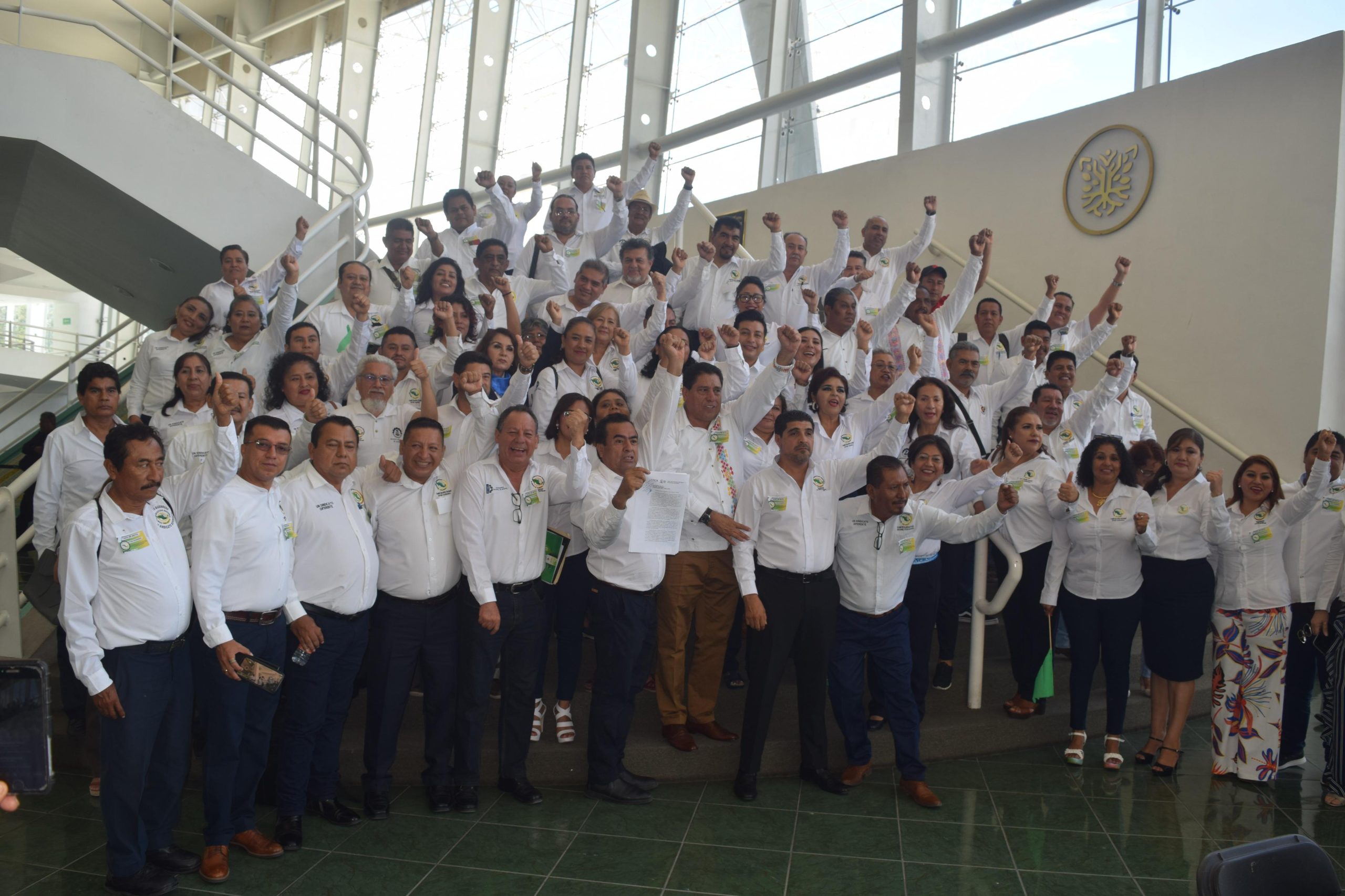 *La Sección 15 del SITEM Guerrero recibe de manos del líder nacional, Diego Ánimas Delgado, la toma de nota para la representación de más de tres mil trabajadores en el estado