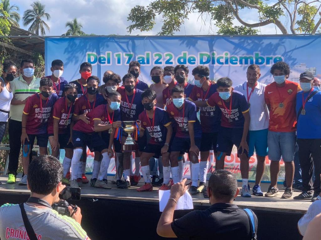 Acapulco, Gro., 22 de diciembre del 2021.- El equipo acapulqueño de fútbol se coronó campeón en la edición del Torneo Nacional Premier 2021, en la categoría 2004; la Dirección del Deporte Municipal participó en la premiación.
