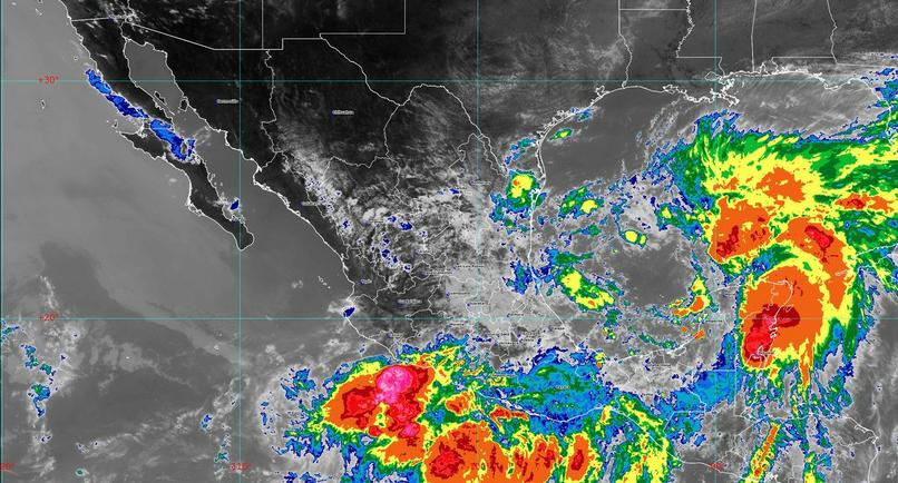 La baja presión se ubicó a las 14:00 horas al sur de la costa guerrerense, presenta 90 por ciento de probabilidad para evolucionar a depresión o tormenta tropical en próximas 12 a 24 horas, moviéndose al noroeste en paralelo a las costas de Guerrero, Michoacán, Colima y Jalisco, provocando precipitaciones pluviales intensas a puntuales torrenciales.