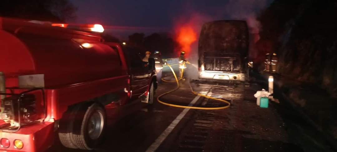 Se informó que se incendió de manera parcial la parte trasera del autobús de pasajeros; donde afortunadamente no se reportaron personas lesionadas y solo dejó daños materiales.