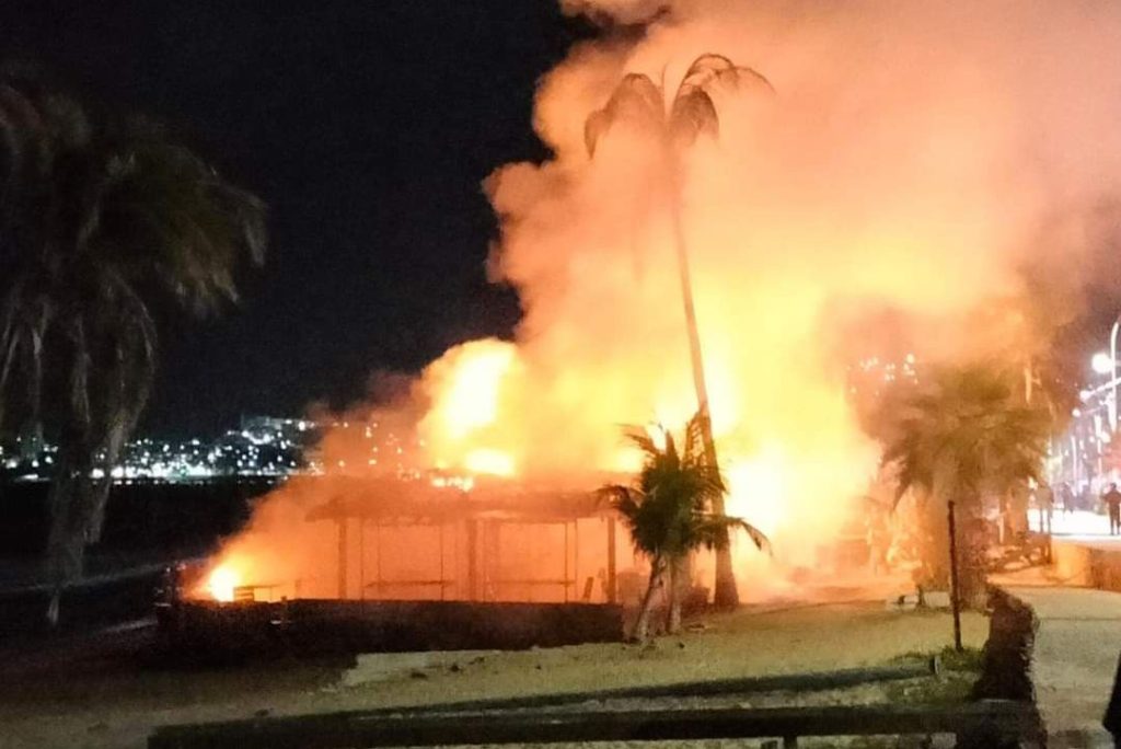 Acapulco; Gro.- Durante los primeros minutos de este miércoles, se registró un incendio en un negocio donde se vendían postres ubicado en la franja de arena de playa Papagayo.