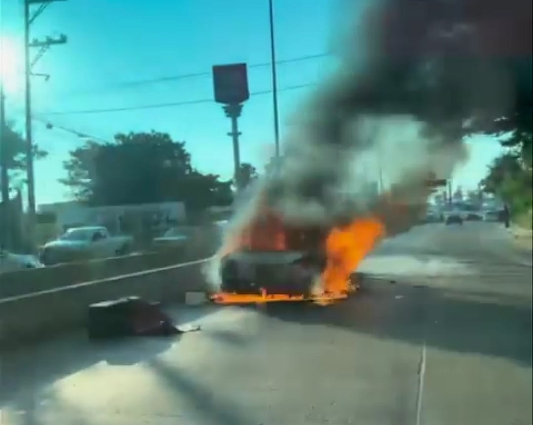 De acuerdo con información de las autoridades, el vehículo se trató de un taxi colectivo de la ruta alimentadora del fraccionamiento Real del Palmar, por lo que se pidió el apoyo a elementos del cuerpo de bomberos para su sofocación.