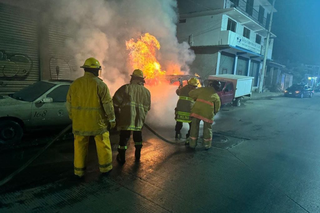 Personal del cuerpo de Bomberos y brigadistas de la Secretaría de Gestión Integral de Riesgos y Protección Civil de Guerrero, sofocaron con una pipa el incendio de ambos vehículos.