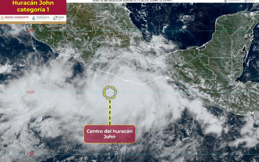 El Servicio Meteorológico Nacional (SMN) informa que “John”, ahora como huracán de categoría 1 en la escala Saffir-Simpson, se ubica frente a las costas de Guerrero y Oaxaca. Su amplia circulación generará lluvias intensas a puntuales extraordinarias en el sur y sureste mexicano, además de reforzar la probabilidad de lluvias fuertes a muy fuertes en el oriente y centro del país.