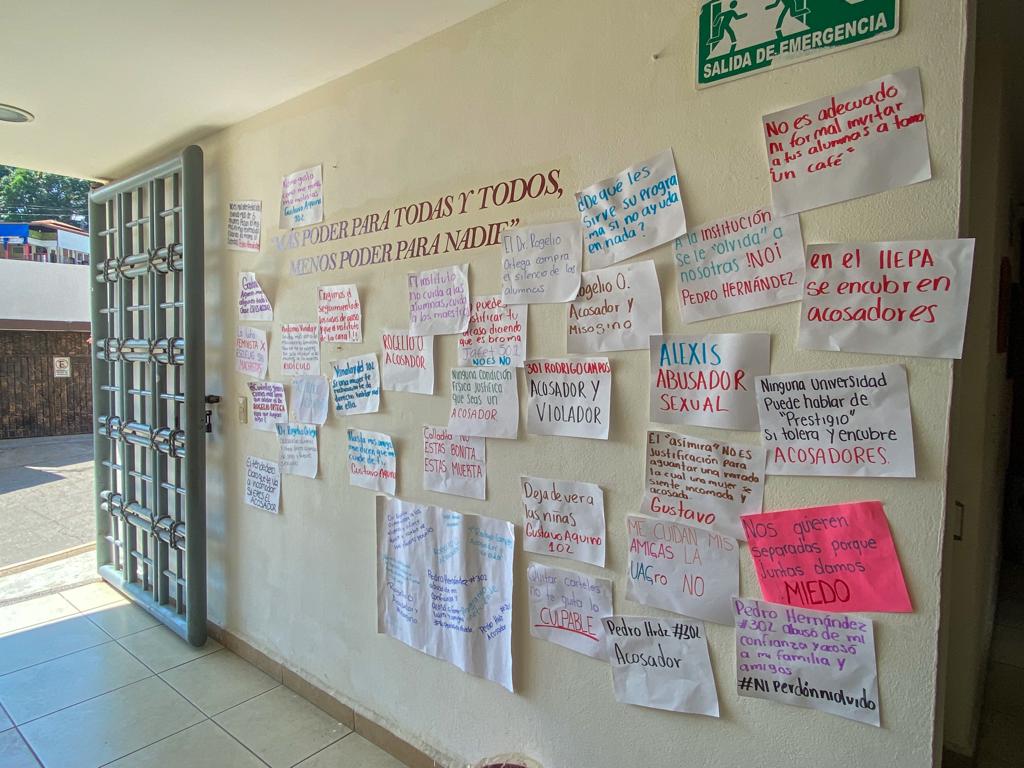 Las jóvenes pegaron pancartas en una pared de la institución ubicada en el fraccionamiento Hornos Insurgentes de Acapulco, en la que se leían mensajes en los que señalaron que en esa escuela encubren a los acosadores y donde hay profesores que miran y hacen comentarios lascivos a las estudiantes.
