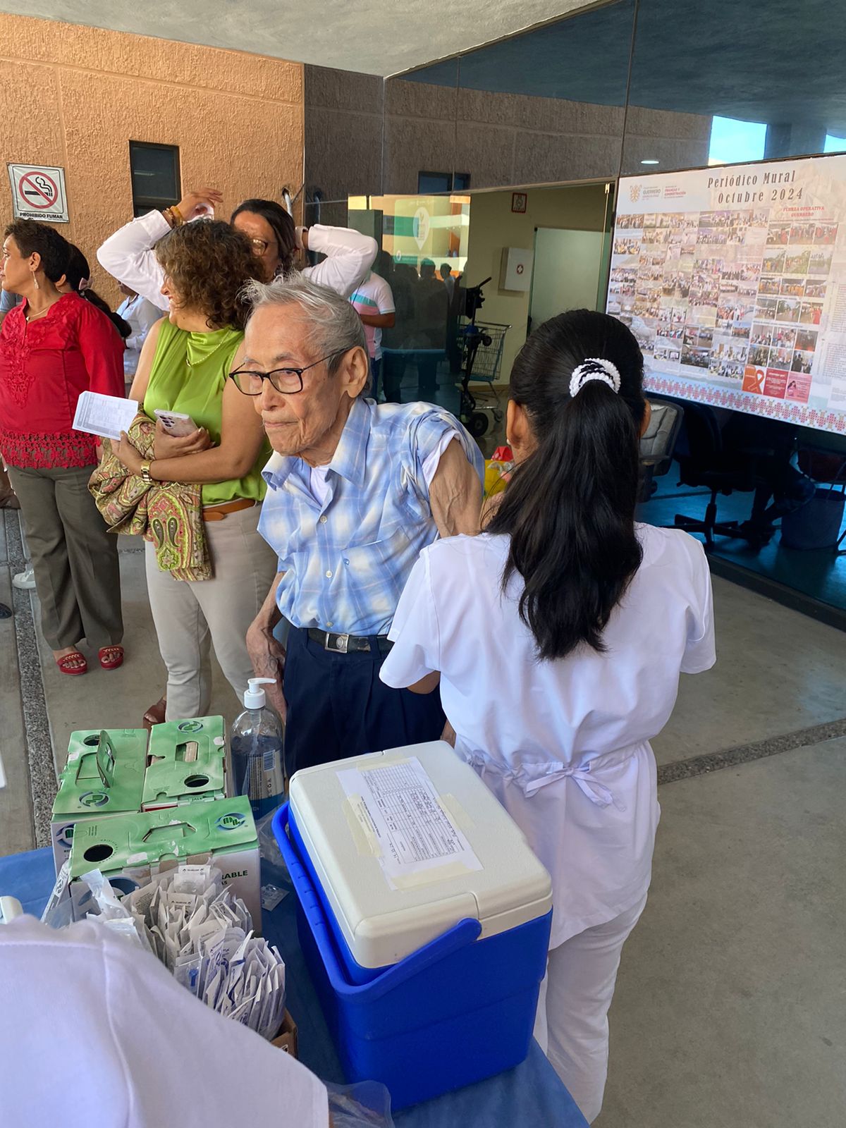 Chilpancingo, Gro., 17 de octubre de 2024.- Con la finalidad de atender la salud y bienestar de las y los trabajadores de las dependencias estatales, la Subsecretaría de Finanzas de la Secretaría de Finanzas y Administración, en coordinación con el ISSSTE, llevaron a cabo una jornada de vacunación en el Recinto del Poder Ejecutivo.