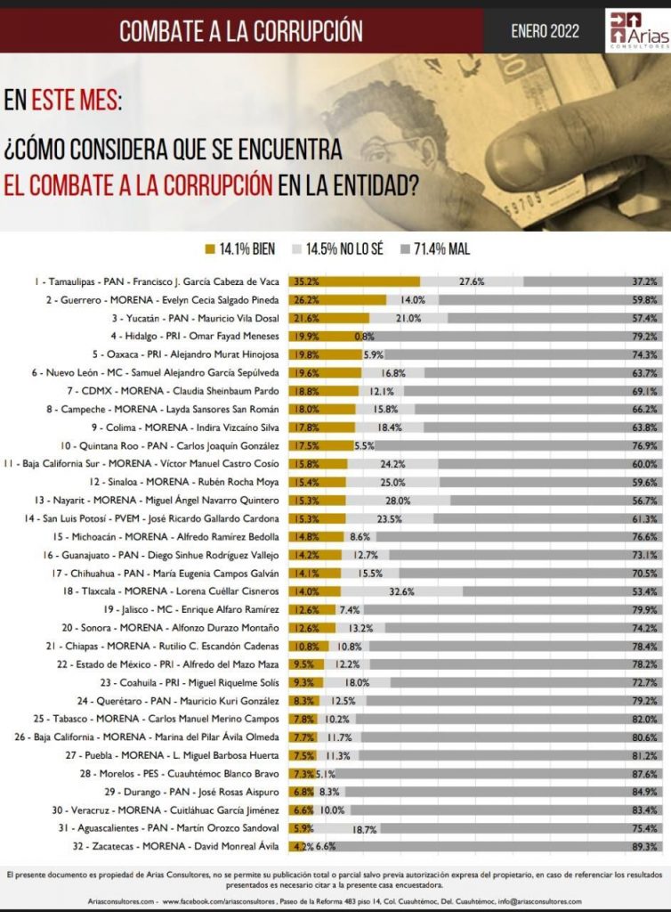 En el tema del combate a la Corrupción, la gobernadora de Guerrero se coloca en el segundo lugar de los 32 mandatario del país, por destacar como uno de sus compromisos de campaña.
