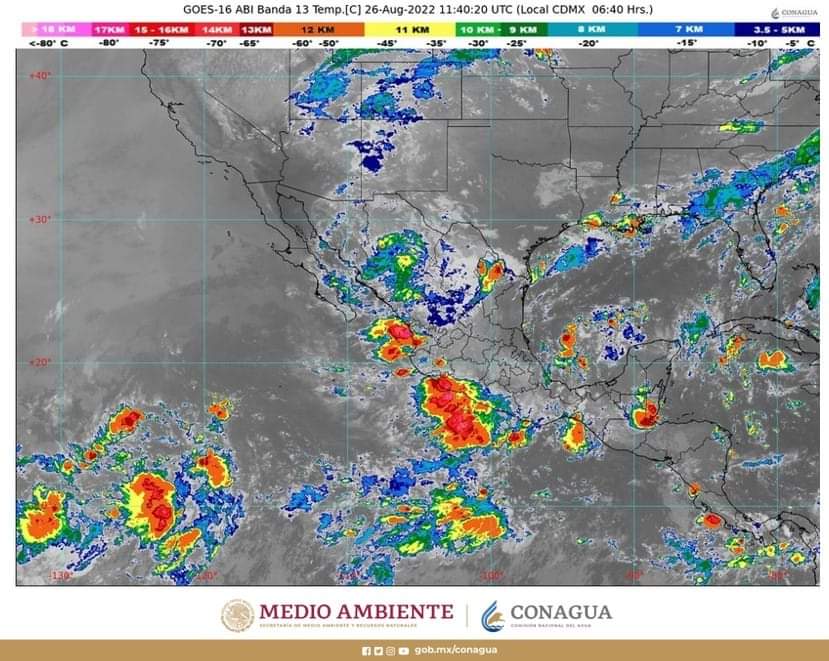 Acapulco, Gro., 26 de agosto de 2022.- Canales de baja presión sobre el suroeste del Golfo de México, la sierra Madre Occidental y el centro del país; el paso de la Onda Tropical Número 24 por el sur de México e inestabilidad en la parte alta de la atmósfera, ocasionarán lluvias muy fuertes acompañadas de descargas eléctricas en Guerrero y varios estados del país.