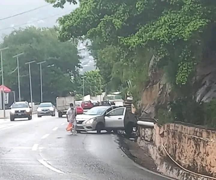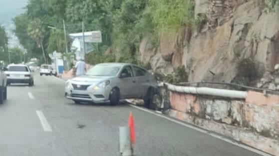 En esta ocasión, el conductor de un auto tipo Versa se impactó contra el muro de contención a la altura del hotel Las Brisas, justamente frente al punto conocido como la piedra de la Rana.