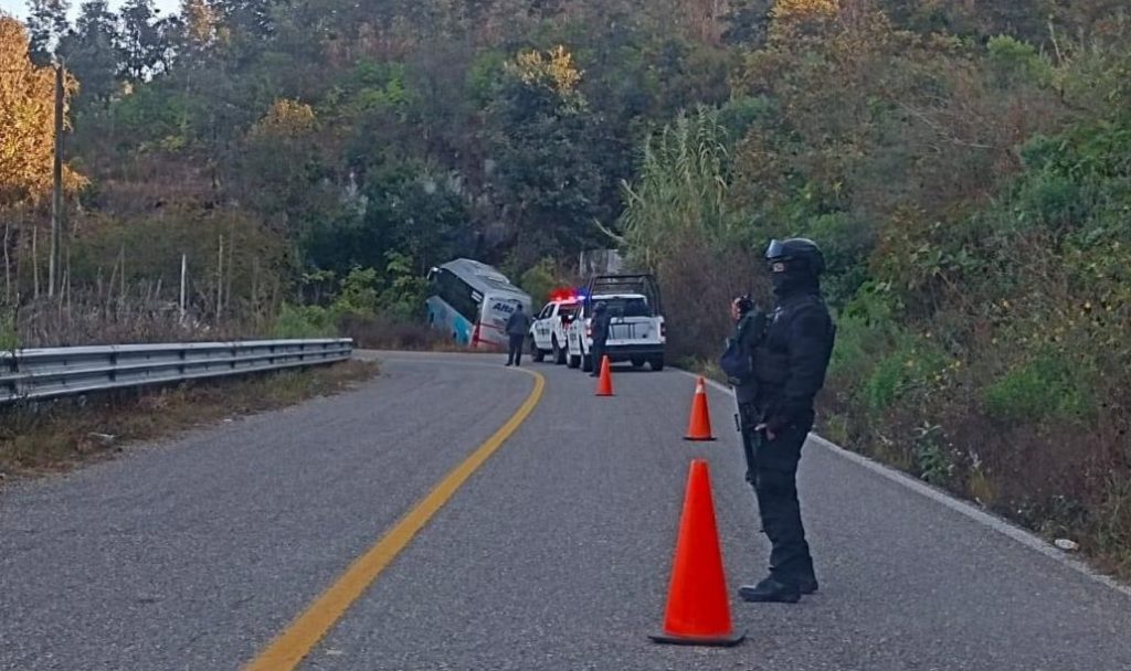 Tlapa de Comonfort, Gro., a 27 de enero del 2023.-La mañana de este viernes fue reportado el accidente de un vehículo de transporte turístico sobre la carretera que conecta las ciudades de Tlapa de Comonfort y Chilapa de Álvarez.