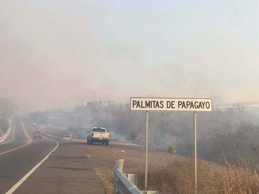 Acapulco, Gro., 01 de abril de 2021.- Un total de 12 incendios forestales y de pastizales se registraron este jueves en zonas rurales y suburbanas de Acapulco, de los cuales 5 están activos y el humo que generan cubre parte de la bahía y el casco urbano del puerto.