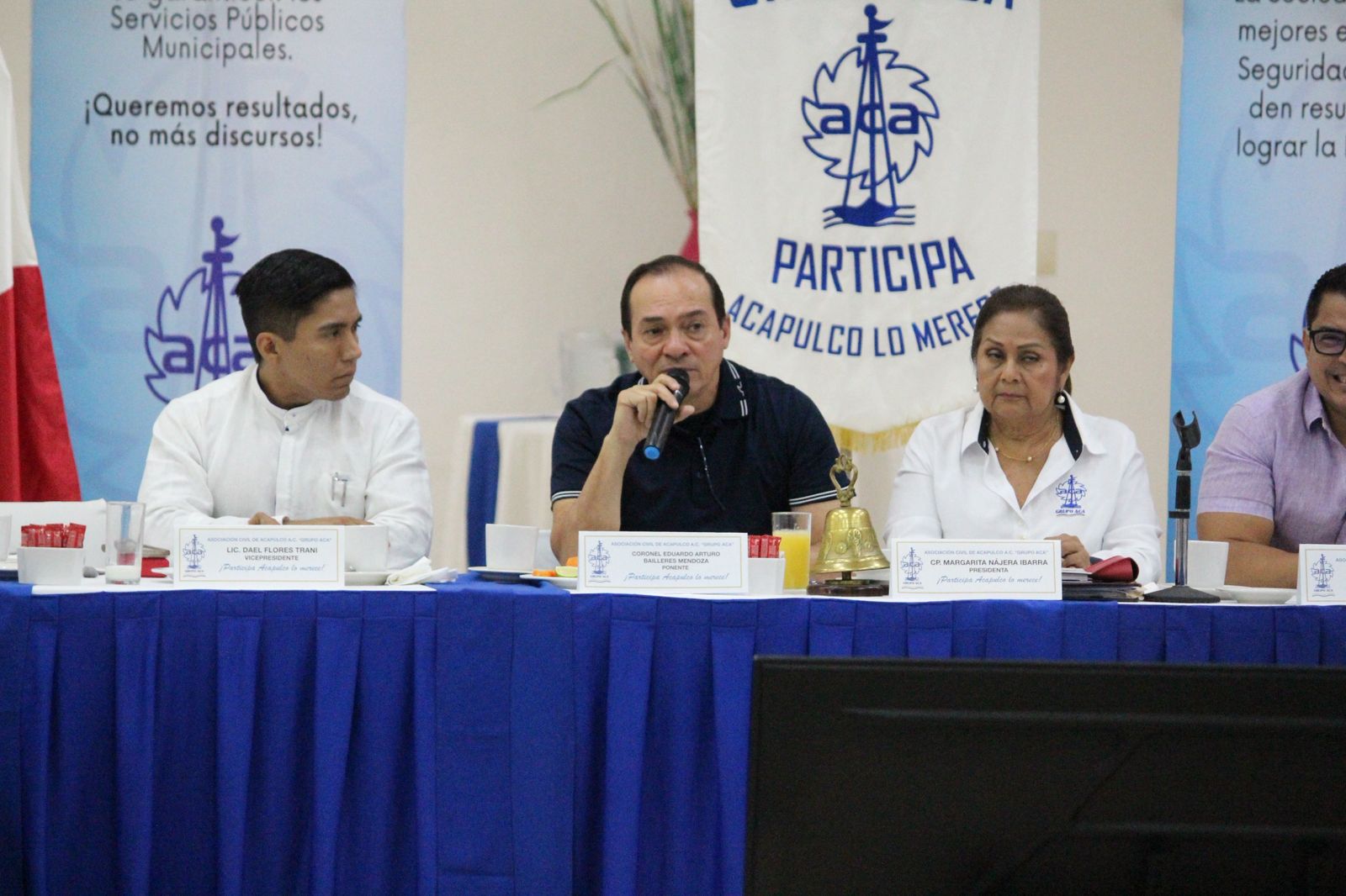 Durante su exposición denominada “Estrategia de Seguridad Acapulco”, los pocos miembros que estuvieron presentes cuestionaron el actuar de la policía municipal durante el evento Acamoto 2025; a lo que respondió que debido a la presencia de las autoridades locales se evitó un impacto mayor en sectores estratégicos.