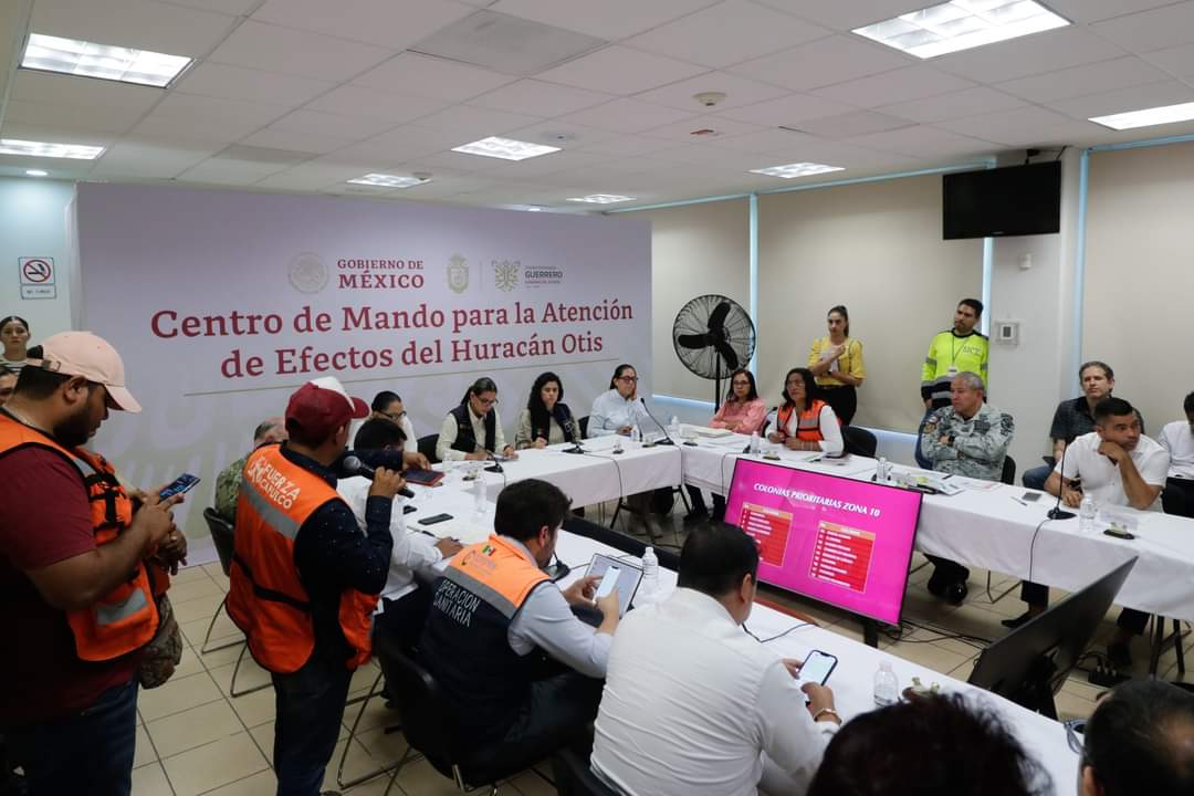 En el Centro de Mando para la Atención de Efectos del Huracán Otis, las autoridades dieron seguimiento a la estrategia establecida para la recuperación del municipio.
