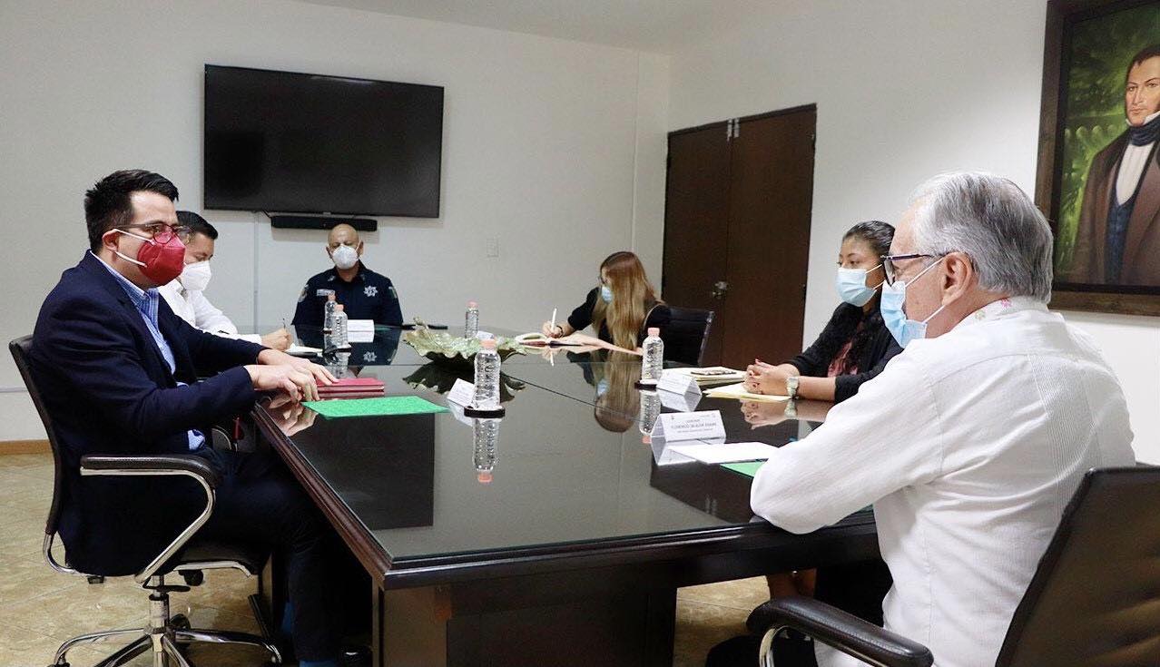En la reunión estuvieron presentes el Secretario de Seguridad Pública, David Portillo Menchaca y la Titular de la Unidad Estatal para la Protección de Personas Defensoras de Derechos Humanos y Periodistas, María de Lourdes Martínez Cisneros.