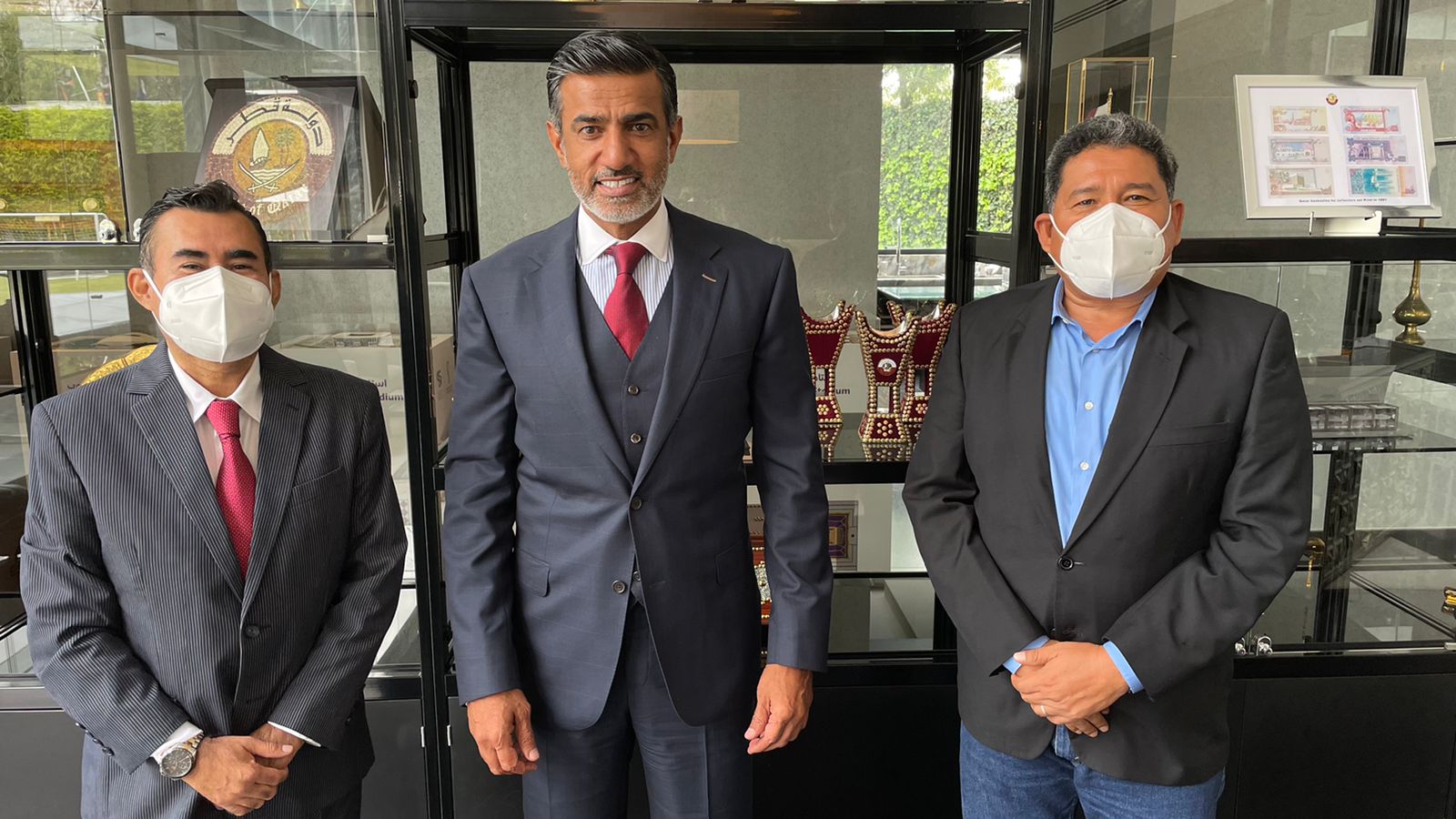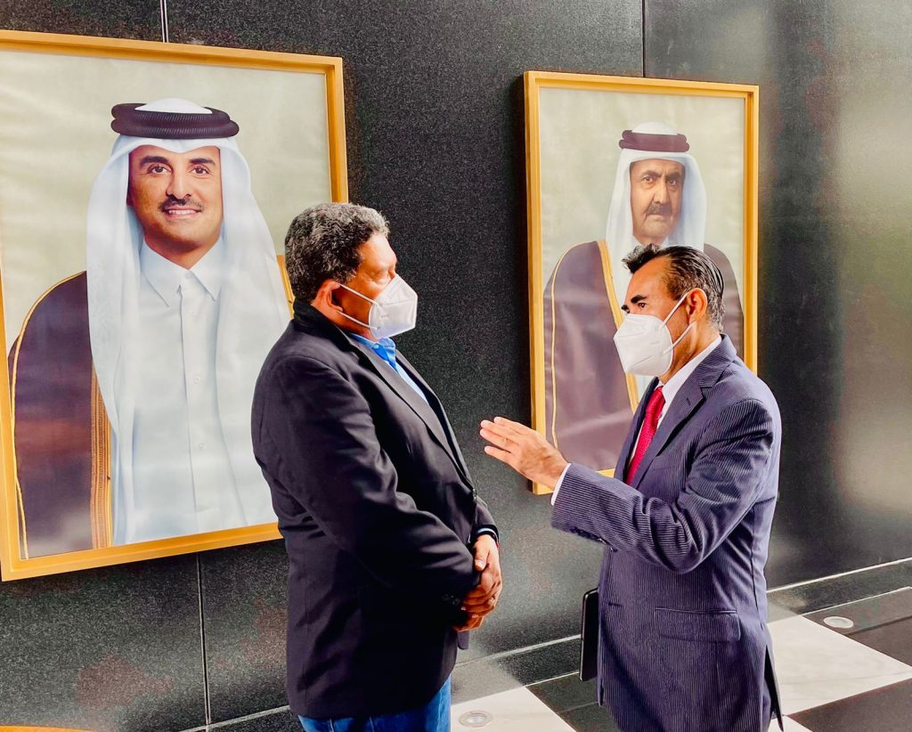 Mohammed Alkuwari en una charla amena, les dio a conocer a Noé Peralta y a Hernández Palma los pormenores de lo que será en el mes de Noviembre de este año, de la World Cup de Futbol que se realizará en Qatar, donde su país será el anfitrión de esta importante justa deportiva del balompié internacional.