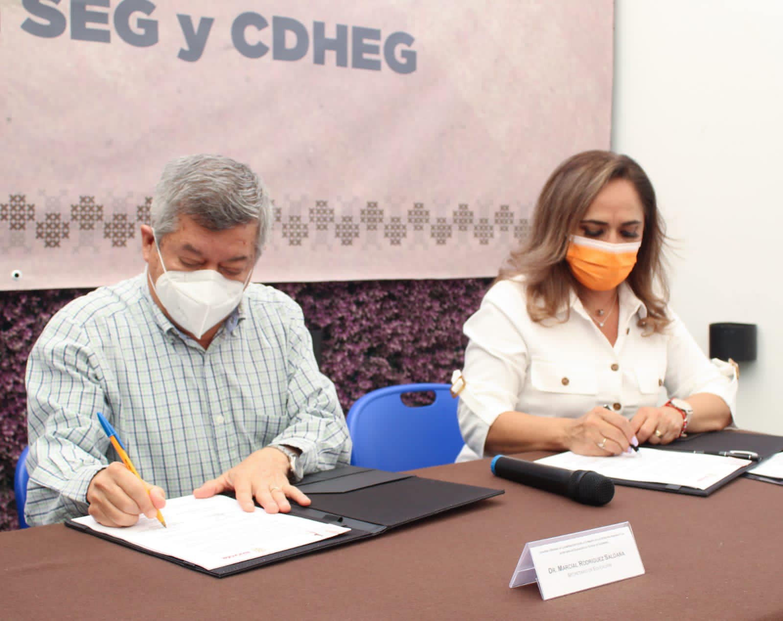 El documento fue firmado por la presidenta y el secretario técnico de la CDHEG, Cecilia Narciso Gaytán y Ángel Miguel Sebastián Ríos, respectivamente, así como por el secretario de Educación en la entidad, Marcial Rodríguez Saldaña.