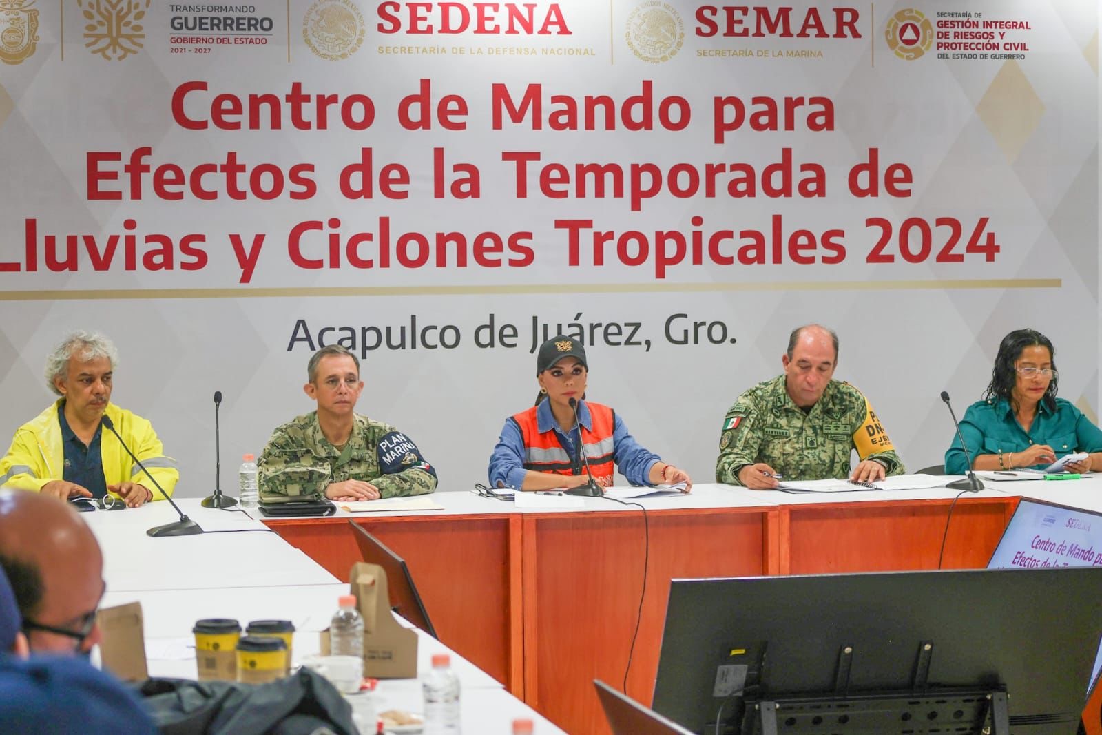 A través de una transmisión en vivo desde el Centro de Mando para Efectos de la Temporada de Lluvias y Ciclones 2024 y en compañía de mandos de la Marina, la Secretaría de la Defensa Nacional y la presidenta municipal de Acapulco, Abelina López Rodríguez, la gobernadora indicó que se mantiene la alerta ante el pronóstico de que continuarán las lluvias. Señaló que a pesar de que “John” se aleja de la entidad, se mantiene la zona de prevención por efectos de huracán desde Tecpan de Galeana hasta Punta San Telmo, Michoacán, generando lluvias fuertes acompañadas de viento y oleaje elevado.