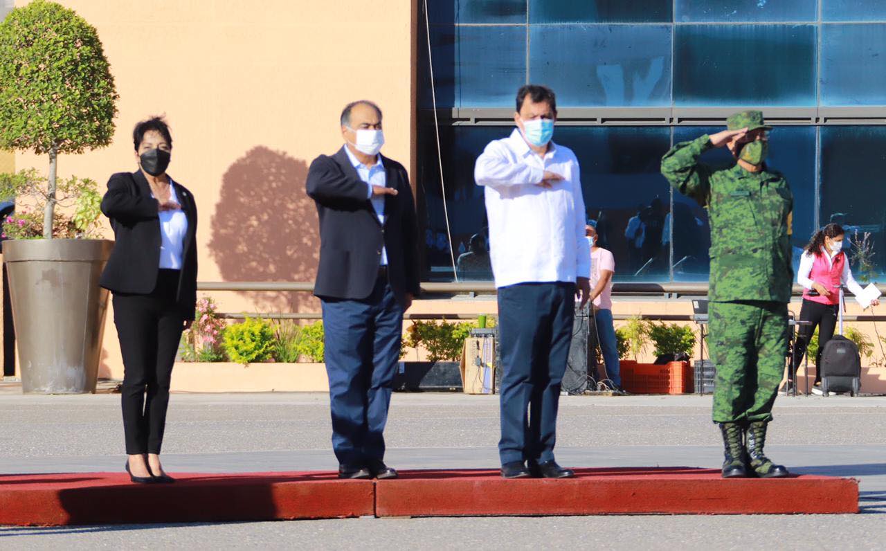 A este acto cívico también asistieron la presidenta de la Mesa Directiva del Congreso local, Eunice Monzón García; el presidente del Tribunal Superior de Justicia, Alberto López Celis; el comandante de la Novena Región Militar, Eufemio Ibarra Flores; el comandante de la Octava Región Naval, Julio César Pescina Ávila; el comandante de la 35 zona militar, Miguel Ángel Aguirre Lara; el coordinador Estatal de la Guardia Nacional, Lucio Vergara Gómez; así como el secretario de Finanzas y Administración, Tulio Samuel Pérez Calvo.