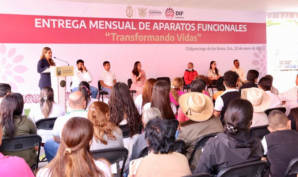 La presidenta del Sistema DIF Guerrero, Liz Salgado, expuso que con esta entrega correspondiente al mes de enero se benefician 230 personas de la región Centro con igual número de aparatos funcionales, sumando más de 3 mil 624 acciones entregadas en lo que va de la administración, por lo que, sostuvo que los recursos del DIF en Guerrero son destinados a los sectores que más lo necesitan con transparencia.