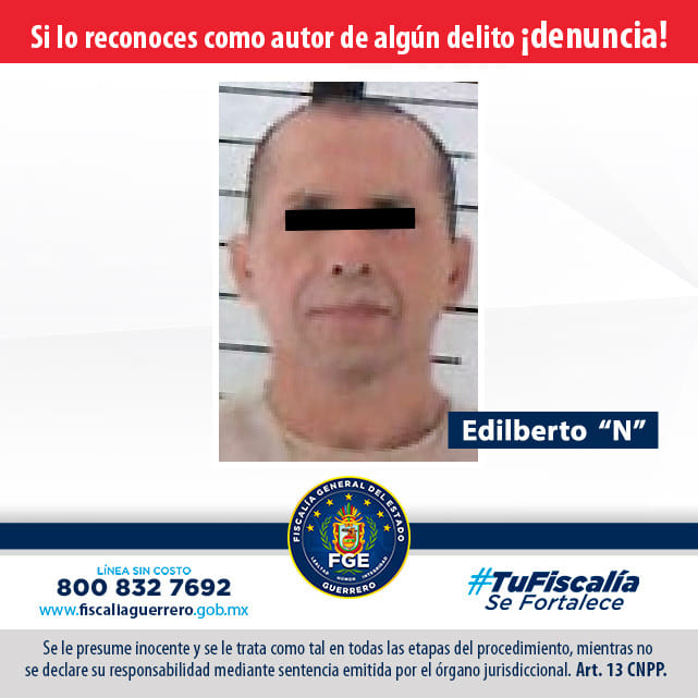 *Fiscalía de Guerrero logra sentencia de 50 años de prisión en contra de Edilberto “N” alías El Gavilán por delito de secuestro.