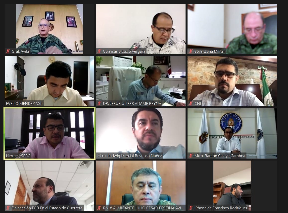 A la reunión asistieron el Comandante de la Novena Región Militar, Celestino Ávila Astudillo; el Comandante de la 35 Zona Militar, Enrique Martínez López; el Comisario de la Guardia Nacional, Lucio Vergara Gómez; el comandante de la Octava Región Naval, Almirante Julio César Pescina Ávila; el Jefe de Estación del Centro Nacional de Inteligencia, Marco Antonio Medina Arredondo; el Delegado de la Fiscalía General de la República, Fernando García Fernández; el Vicefiscal de Prevención y Seguimiento, Ramón Celaya Gamboa.