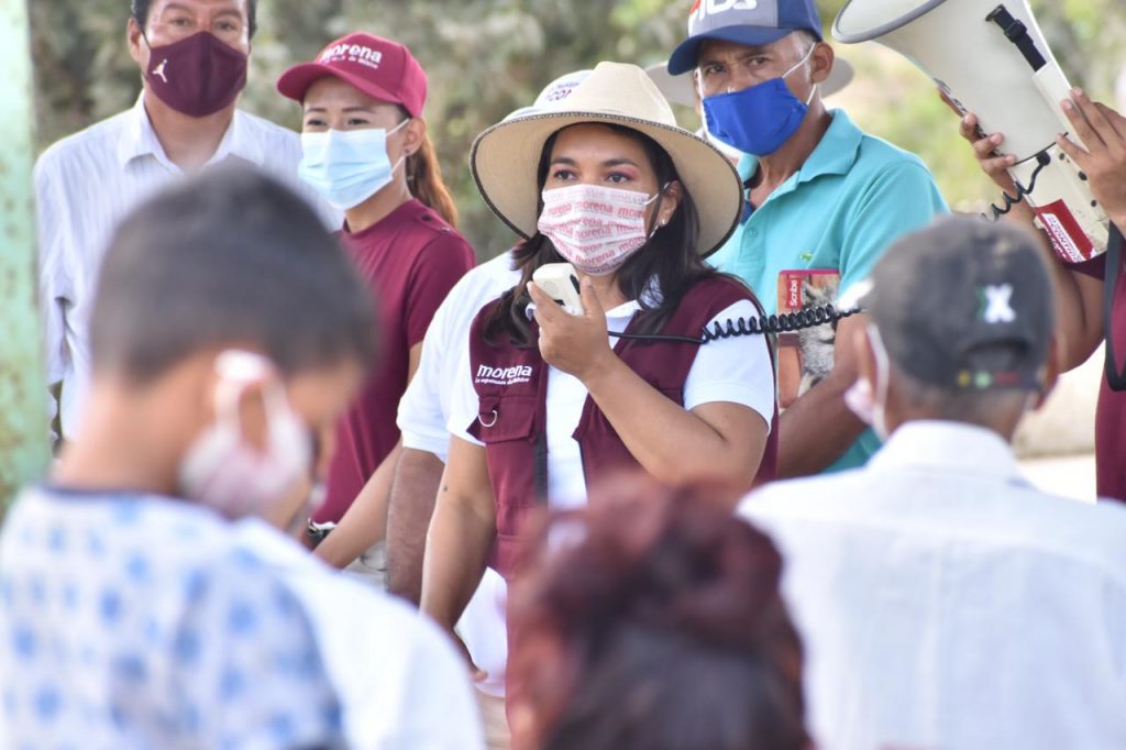 ACPULCO, GRO., A 18 DE ABRIL DE 2021.- n su recorrido este domingo por los poblados de El pelillo, Zapote, Kilómetro 22, La Frontera Aguacatillo y Lomas de Aire, la candidata a diputada por el distrito 5 local de Morena, Beatriz Mojica, dijo seguir el ejemplo del presidente Andrés Manuel López Obrador; “no fallarle al pueblo”, reconoció que el presidente le esta cumpliento a la gente y como nunca antes le estan llegando los recursos a quién más lo necesita.