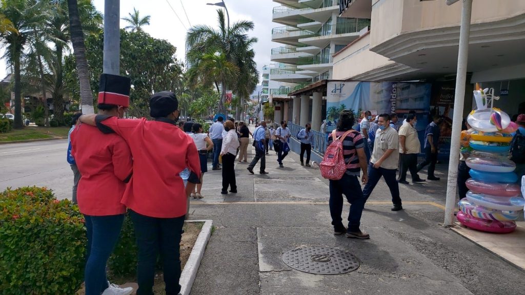 Trabajadores de distintas hospederías fueron evacuados como medida de seguridad, debido a que el fuerte sismo se sintió por varios segundos en la carpeta asfáltica.