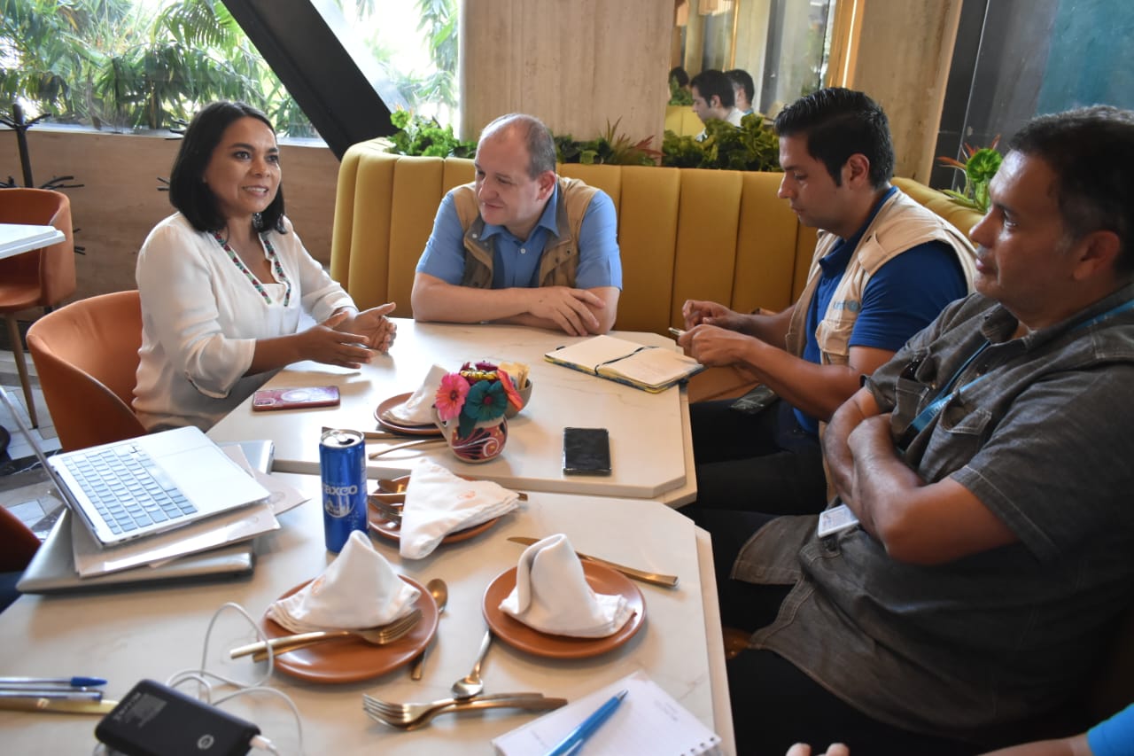 Acapulcl, Gro., a 12 de noviembre de 2023.- En un encuentro casual con Fernando Carrera, representante de UNICEF en México, la diputada Beatriz Mojica en su calidad de presidenta de la Comisión de los Derechos de las Niñas, Niños y Adolescentes del Congreso del Estado de Guerrero, solicitó a la organización internacional su acompañamiento para dar atención médica a las niñas y niños afectados por el Huracán Otis.
