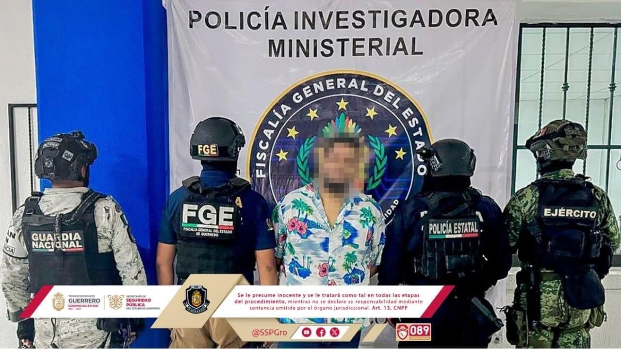 Acapulco, Guerrero, 09 de octubre de 2024.- En una operación conjunta de seguridad y prevención del delito en Acapulco, elementos de la Policía Estatal, en coordinación con la Fiscalía General del Estado, la Secretaría de la Defensa Nacional (SEDENA) y la Guardia Nacional, lograron la detención de una persona identificada como presunto integrante de un grupo delictivo en Acapulco.